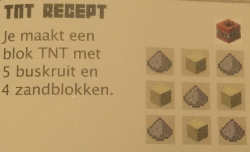 Je maakt 1 blok TNT van: